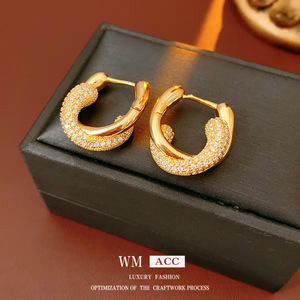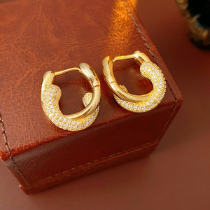 真金电镀锆石水滴U形耳扣轻奢高级感精致百搭耳环设计感小众耳饰