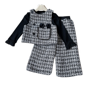 春秋女童套装新款2025长袖打底衫小香风马甲背心阔腿裤三件套跨境
