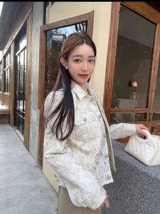 高品质~秋季新款小个子短外套女长袖时尚提花休闲百搭夹克上衣女