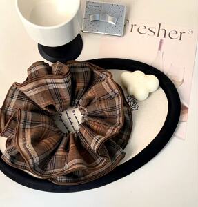 2025新款复古简约斑马条纹大肠发圈气质发绳马尾头绳皮筋发饰头花