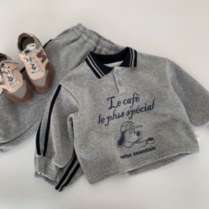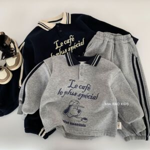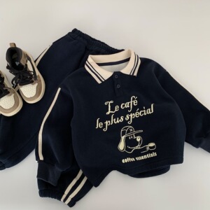 麦宝儿童加绒套装2025冬季新款男童翻领运动两件套湖州织里童装潮
