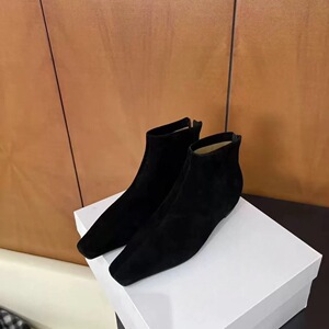 小众设计小短靴女2025年秋冬款瘦瘦靴方头后拉链法式及踝靴