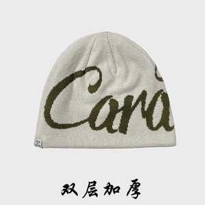 美式街头字母提花双层加厚针织帽男女嘻哈滑板护耳套头帽秋冬冷帽