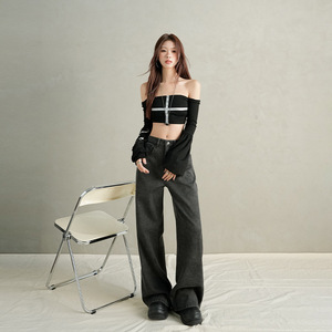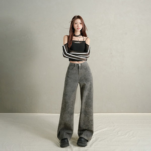 2025秋季新款&百搭神裤星空黑灰星光点缀超超柔阔腿牛仔裤女