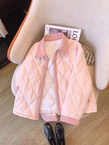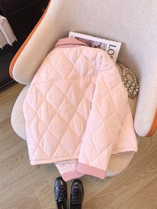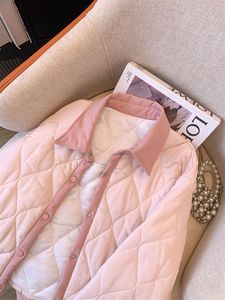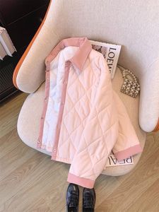 法式温柔风菱格翻领夹棉外套女小个子甜美减龄撞色棉衣保暖面包服