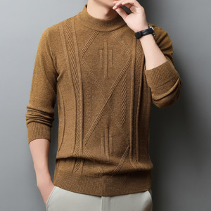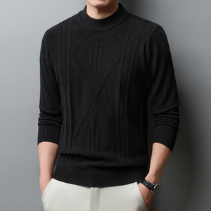 新款高品质男士提花针织羊毛质感半高领不起球不掉色不缩水质量保