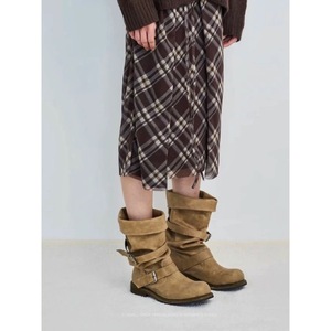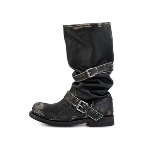 牛皮版~真皮长靴女重工做旧堆堆靴子皮带扣两穿复古骑士靴户外靴