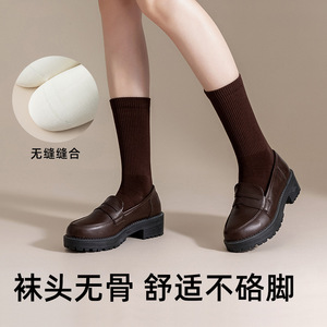纯棉袜子女款中筒袜秋冬季微压显瘦轻运动袜吸汗抑菌防臭无骨长袜