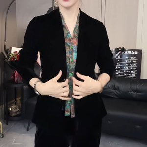 一件代发新中式假两件丝绒拼接外套2025秋季爆款时尚洋气百搭小衫