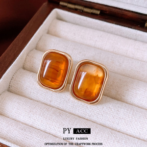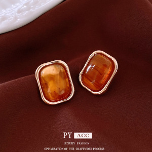 美拉德风银针方形亚克力耳环简约个性潮流耳钉设计感小众耳饰批发