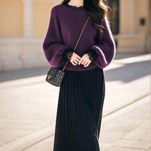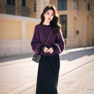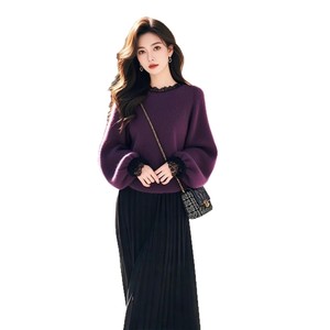 【套装】秋冬时尚修身蕾丝花边圆领长袖百搭半身裙套装99363+Q32