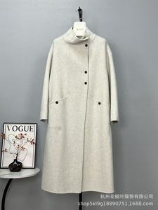 韩版双面羊毛羊绒大衣长款韩系宽松休闲立领直筒灰色加厚女外套