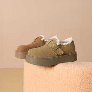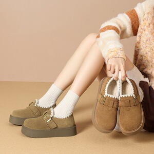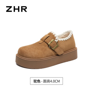 ZHR则则编织民族风勃肯鞋秋冬便捷魔术贴精致休闲毛绒女鞋AB175B