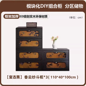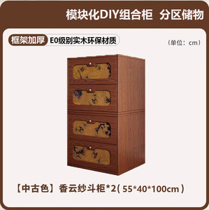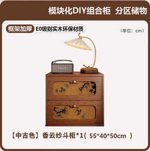 中古风卡门柜卧室床头柜实木斗柜香云纱落地柜自由组合柜客厅边柜
