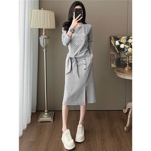深圳南油休闲套装女2025秋新款显瘦长袖卫衣灰色半身裙百搭两件套