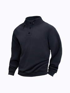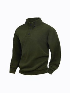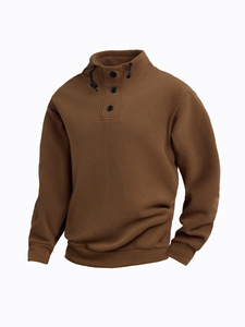 跨境男士半开襟摇粒绒卫衣 立领抽绳保暖上衣 秋冬休闲百搭套头衫