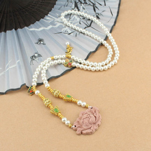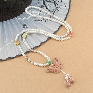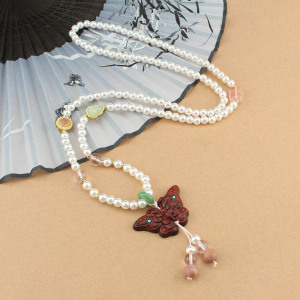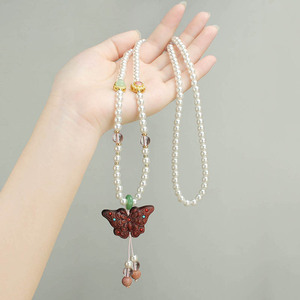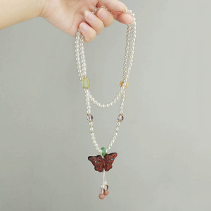 新中式国风仿珍珠串珠蝴蝶吊坠项链女款小众高级感汉服马面裙配饰