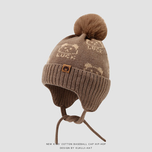 儿童帽子秋冬季毛线帽可爱卡通宝宝防寒套头帽新款包头帽保暖针织