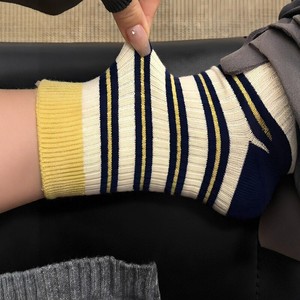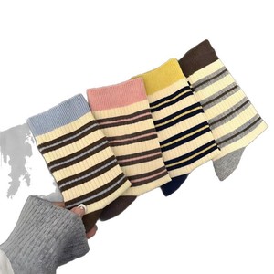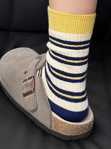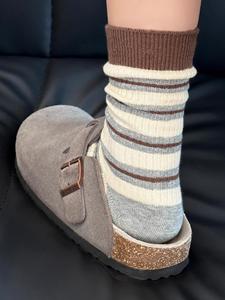 美拉德复古条纹袜子女春秋款纯棉中筒袜ins潮日系堆堆袜长袜棉袜