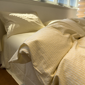 水洗棉色织提花条纹四件套全棉纯棉1.5m1.8米被套床单宿舍三件套