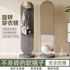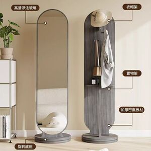 旋转穿衣镜全身落地镜家用卧室挂衣帽架镜子一体试衣镜立式可移动