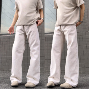 简约大气舒适百搭长裤纯色男士牛仔休闲裤直筒时尚垂感宽松牛仔裤