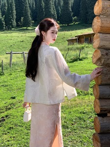 凌茜恣禾【素月盘香】新中式盘扣提花上衣女早秋复古宽松外套