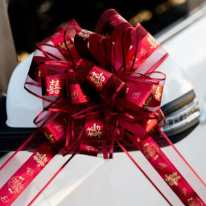 爆款雪纱款【超大朵花球】【大红喜字】(10条装)