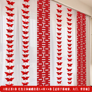 【2.2米长条】喜字挂饰【2条装】+渐变粉色蝴蝶2条+红色蝴蝶2条+送胶点