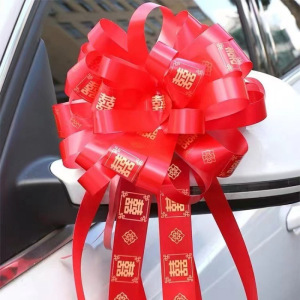 爆款雪纱款【超大朵花球】【大红喜字】(30条装)