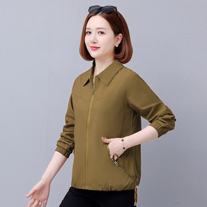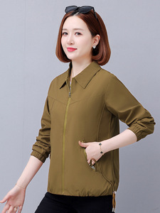 休闲翻领夹克外套女春秋2025新款爆款秋季中老年妈妈大码短款风衣