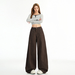 美式辣妹水洗复古拼接分割阔腿牛仔裤女百搭舒适高腰宽松直筒裤子
