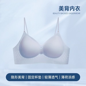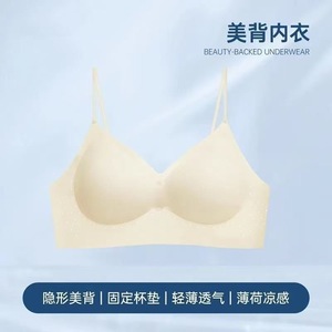 大露背隐形粉底液内衣女聚拢美背冰皮凉感固定杯无痕文胸罩夏薄款