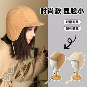 ins麂皮绒飞行帽女秋冬双面可戴保暖防寒韩版雷锋帽护耳骑车帽潮