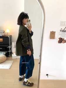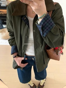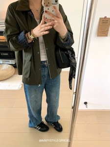 25秋冬新款慵懒简约大气时尚个性格纹拼色夹克工装外套146