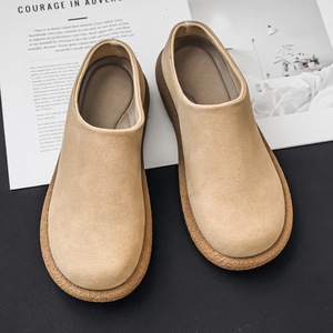 男士新款复古舒适绒面休闲穆勒鞋时尚慵懒博肯鞋懒人一脚蹬皮鞋男