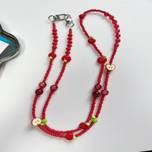 红色珠子苹果斜跨链+卡片