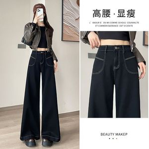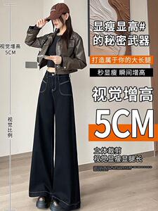 高腰黑色阔腿牛仔裤女春秋2025年新款宽松设计风显瘦微喇直筒裤子