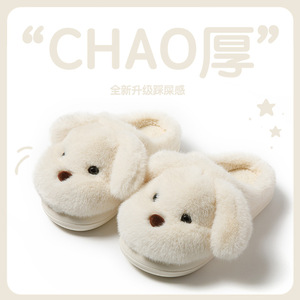 冬季新款小狗踩屎感棉拖鞋女2025防滑学生宿舍款家居保暖室内棉鞋