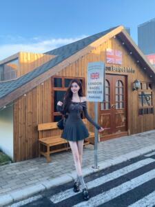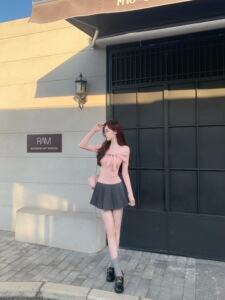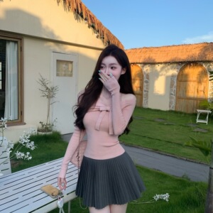 白水女 miu系学姐 小众显瘦一字肩毛织蝴蝶结长袖针织衫