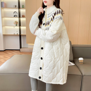 2025秋冬女装棉服拼接针织开衫女欧货慵懒风宽松大码长款毛衣开衫