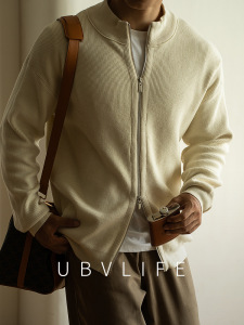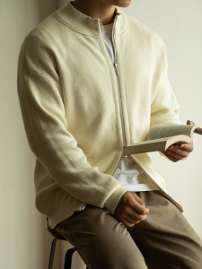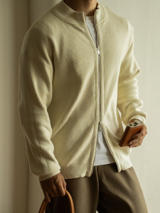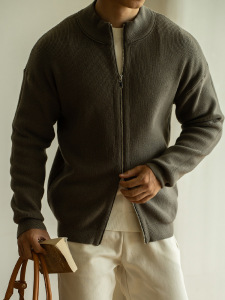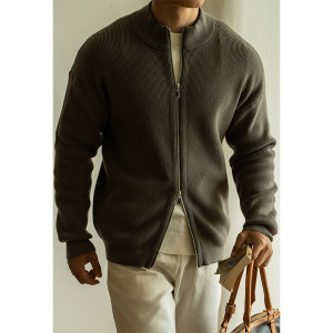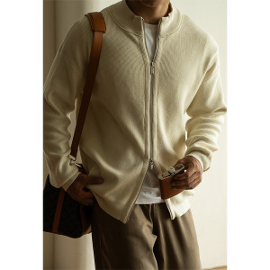 长绒棉12针立领双向拉链针织开衫男士2025秋冬老钱风休闲毛衣外套
