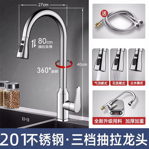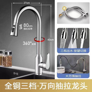 厨房万向旋转抽拉水龙头冷热洗菜池水槽洗菜盆防溅水万向抽拉龙头