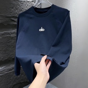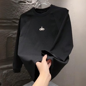 春秋新款潮牌刺绣拼接圆领卫衣男简约时尚宽松百搭休闲上衣打底衫