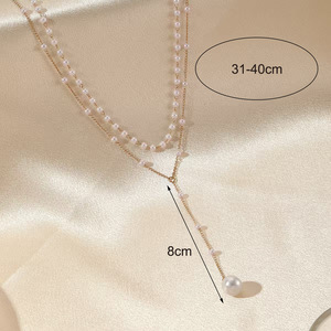 欧美跨境饰品Y字仿珍珠流苏项链双层颈链叠戴毛衣链小众项链配饰