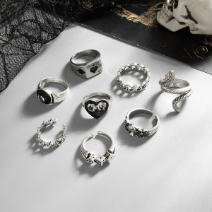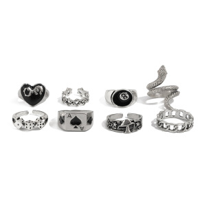 欧美跨境时尚ins黑桃A骰子戒指套装 暗黑风滴油桃心蛇形指环Rings