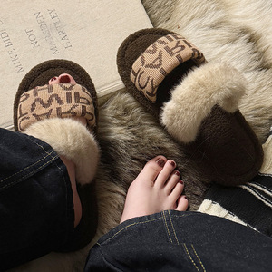 DIMIFEI 秋冬室内棉拖简约字母毛绒百搭一字露趾防滑女士毛毛拖鞋