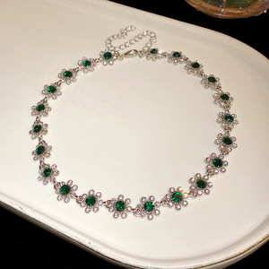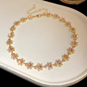 镶钻花朵时尚简约项链复古宫廷风气质锁骨链轻奢高级感项饰批发女