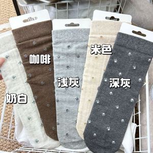 秋季新款简约风优雅千金感堆堆袜小清新纯色系小碎花中筒袜女法式