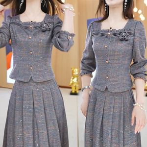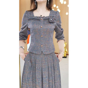 高级小香风简约两件套女秋季新款时尚上衣半身裙修身套装女秋